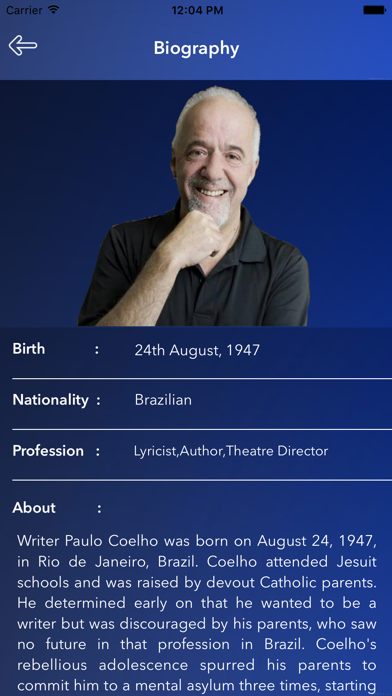WindowsDen the one-stop for Lifestyle Pc apps presents you Paulo Coelho Quotes by Jasmin Siddhpara -- Welcome to explore the Paulo Coelho. This application has a complete collection of Paulo Coelho quotes. It features all of is best quotes which can truly inspire any human across the globe. This app has some of the best features such as: • 100% Free and Offline • Save your favorite quote. • Short Biography • Social media sharing features • Nice User Interface. .. We hope you enjoyed learning about Paulo Coelho Quotes. Download it today for Free. It's only 5.34 MB. Follow our tutorials below to get Paulo Coelho Quotes version 1.0 working on Windows 10 and 11.