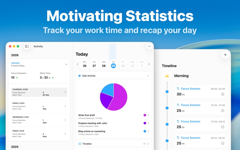 WindowsDen the one-stop for Productivity Pc apps presents you Focus – Productivity Timer by Masterbuilders -- Meet Focus: the best time manager for iPhone, iPad, Apple Watch and Mac. Focus is the most elegant and professional solution to get more work done. Stay focused by working in highly efficient sessions, tackling one task at a time. “[…] a tool that can genuinely make people more productive" – MacStories. net “[…] a must-have for anyone who finds themselves easily getting distracted or forgetting to take occasional breaks. " – iDownloadBlog.. We hope you enjoyed learning about Focus – Productivity Timer. Download it today for Free. It's only 23.50 MB. Follow our tutorials below to get Focus version 2026.1.1 working on Windows 10 and 11.